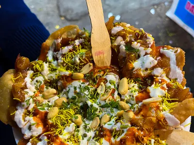 Soft bhale dipped in creamy yogurt, topped with sweet and spicy sauces, delivering a refreshing taste that balances every meal